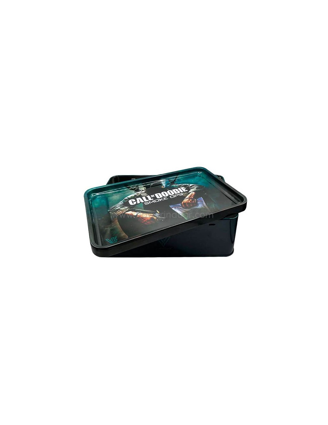 Caja metálica para guardar tus utensilios de liar, con la tapa que es una bandeja de liar.