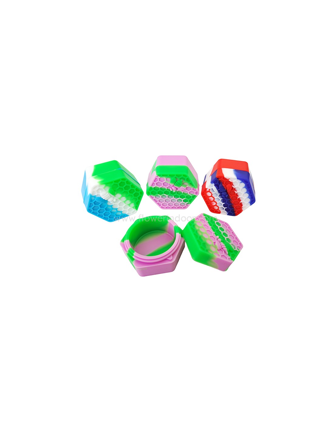 Envase de silicona para guardar extracciones con forma de panal de abejas. La parte exterior es hexagonal, pero su interior es redondo, para evitar bordes.
