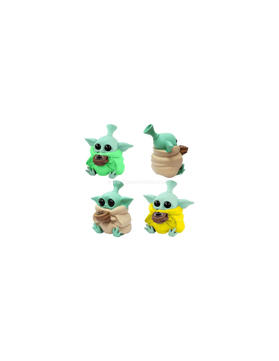Pipa de agua de silicona, con la forma de un pequeño Yoda, ideal para los amantes de Star Wars.