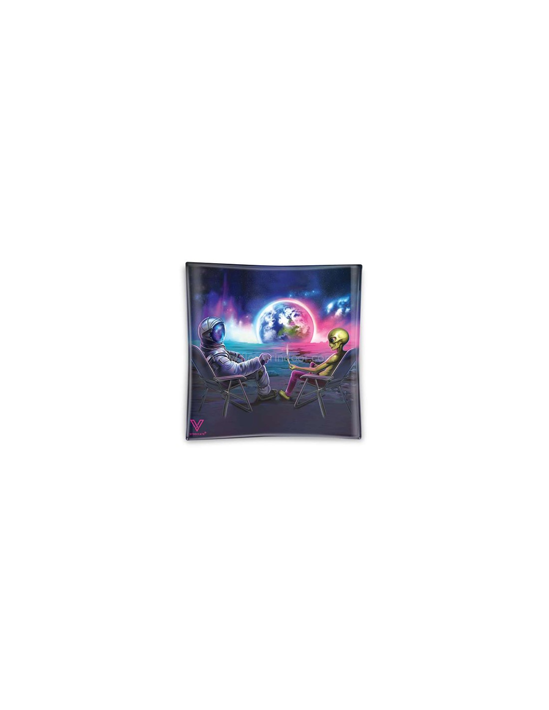 El cenicero cuadrado de cristal está disponible en diferentes diseños originales del estilo cannabico.