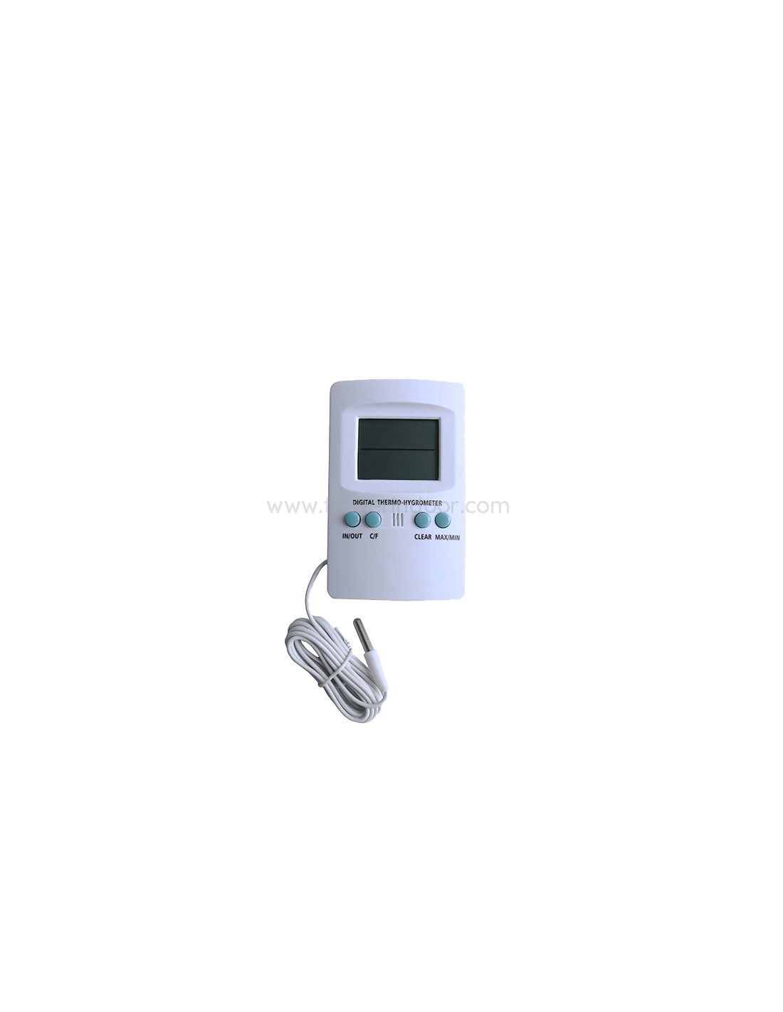 El Termohigrómetro tiene una sonda de 3 metros de longitud, para poder introducirla en el espacio de cultivo, y tener una medición de temperatura y humedad mucho más precisa en el punto de colocación de la sonda.