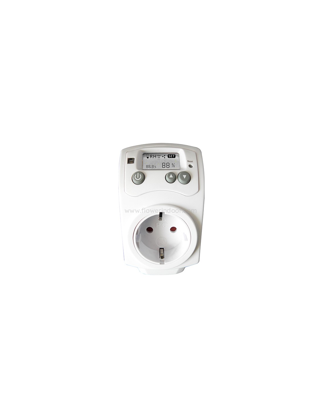 Es digital y visualiza la lectura de la humedad de la estancia, pudiendo ejercer un control eficaz del humidificador/deshumidificador que esté conectado en ese momento.