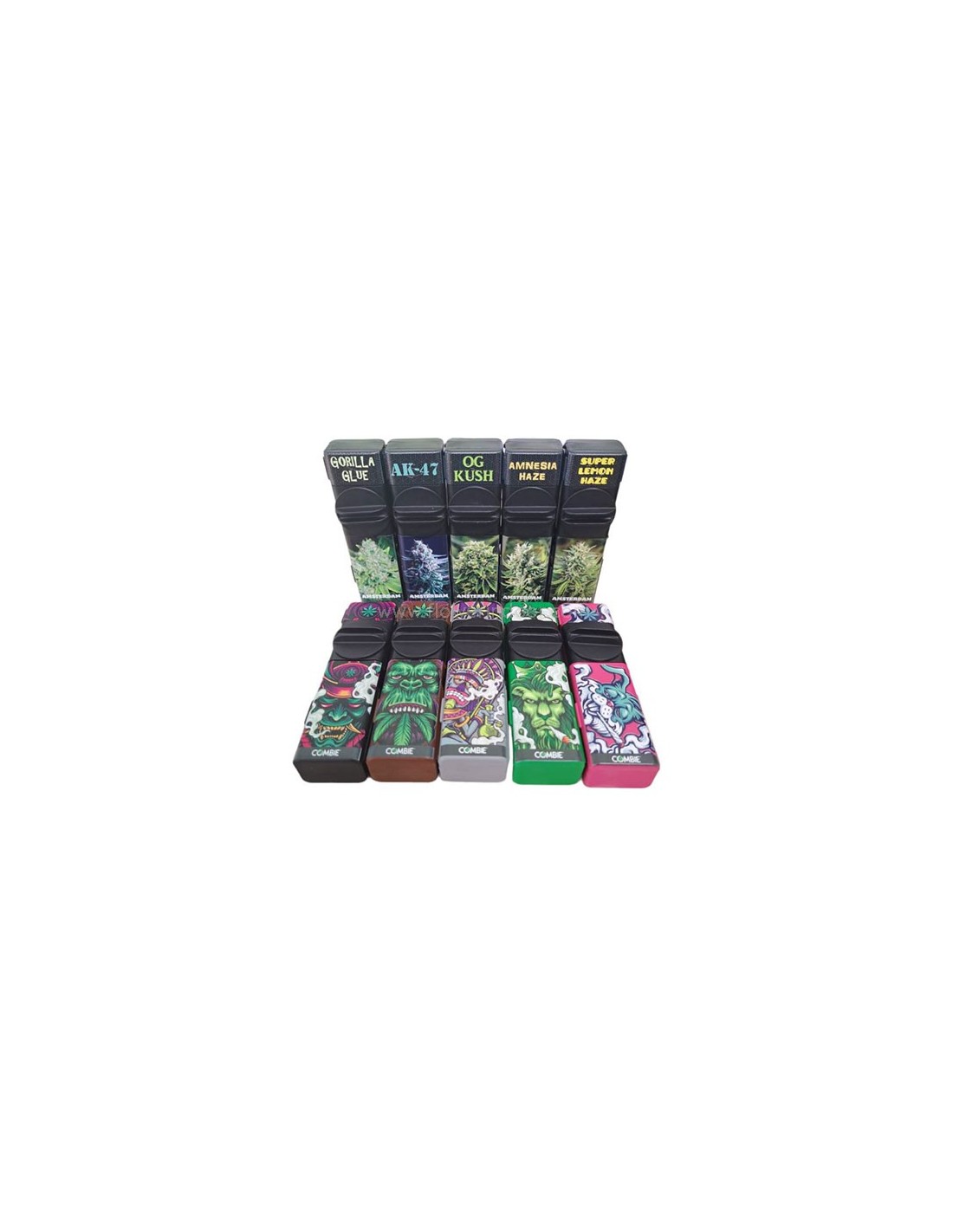 El grinder Combie 6 en 1 es una caja que lleva un grinder, un compartimento contenedor, una herramienta de limpieza, un espacio para mezclar tus hierbas, y un librillo de papel, y de filtros,