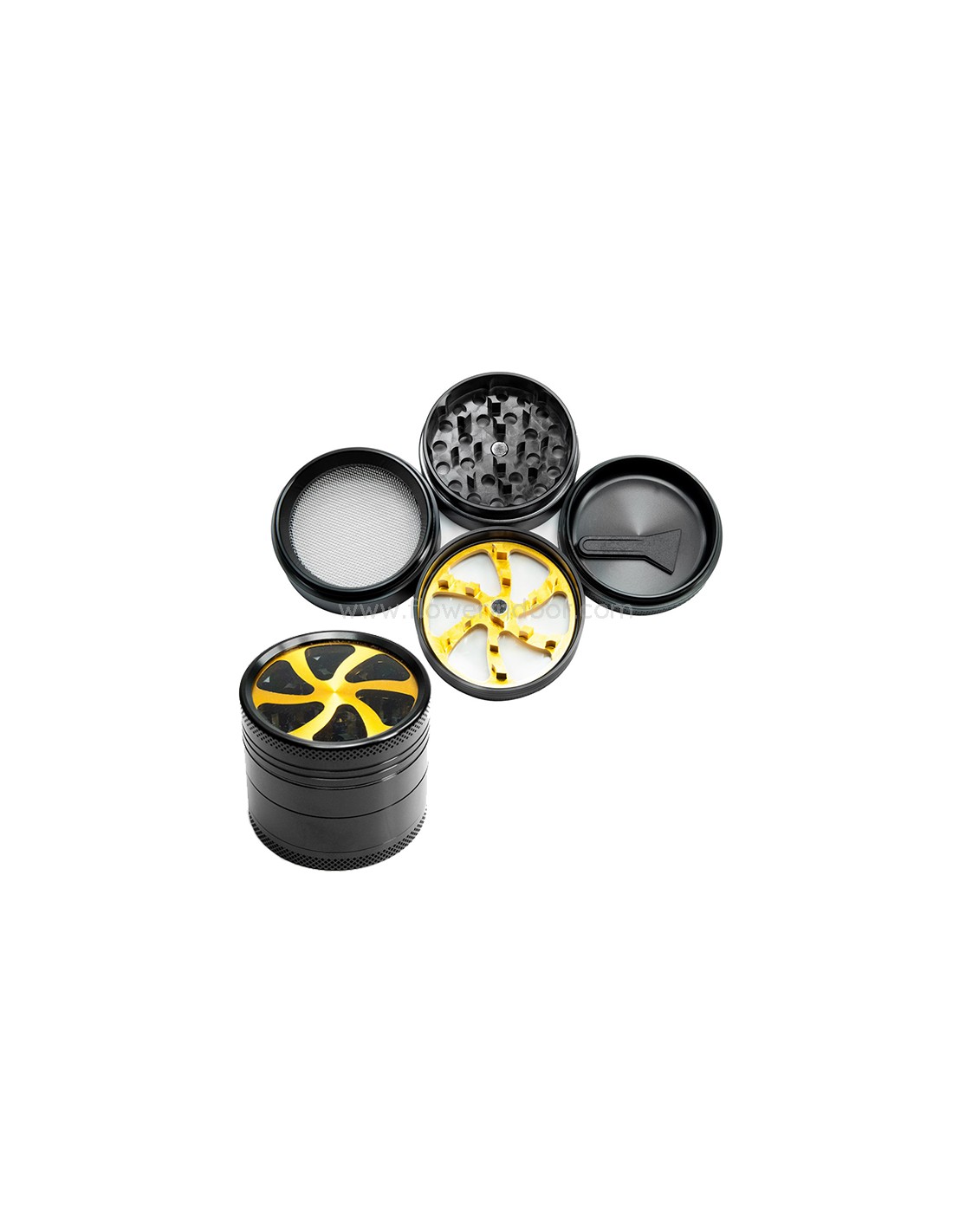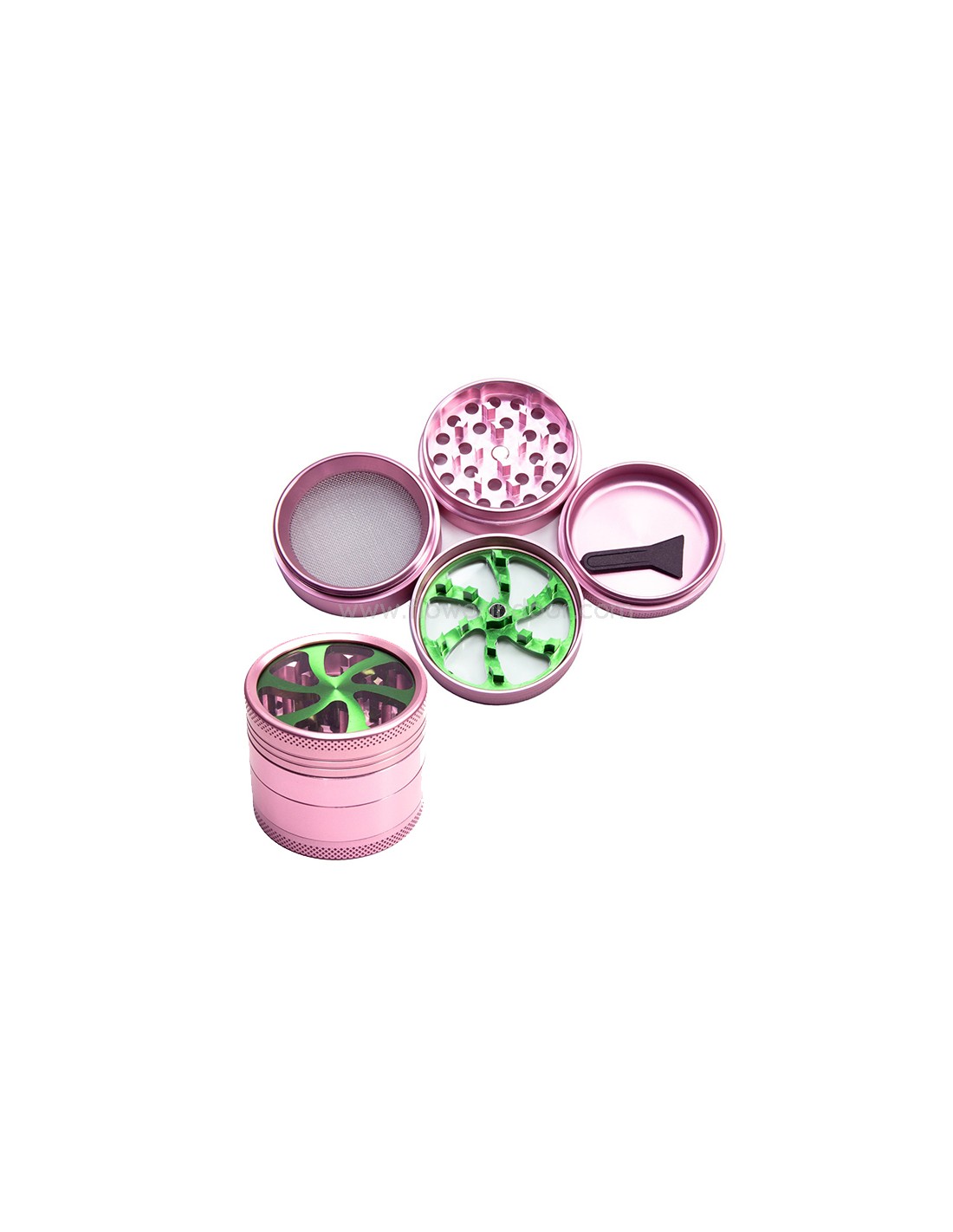 Grinder Wheel de aluminio, con la tapa transparente para ver como se desmenuza la hierba. Grinder de 4 partes y 50 mm de diámetro, con polinizador.