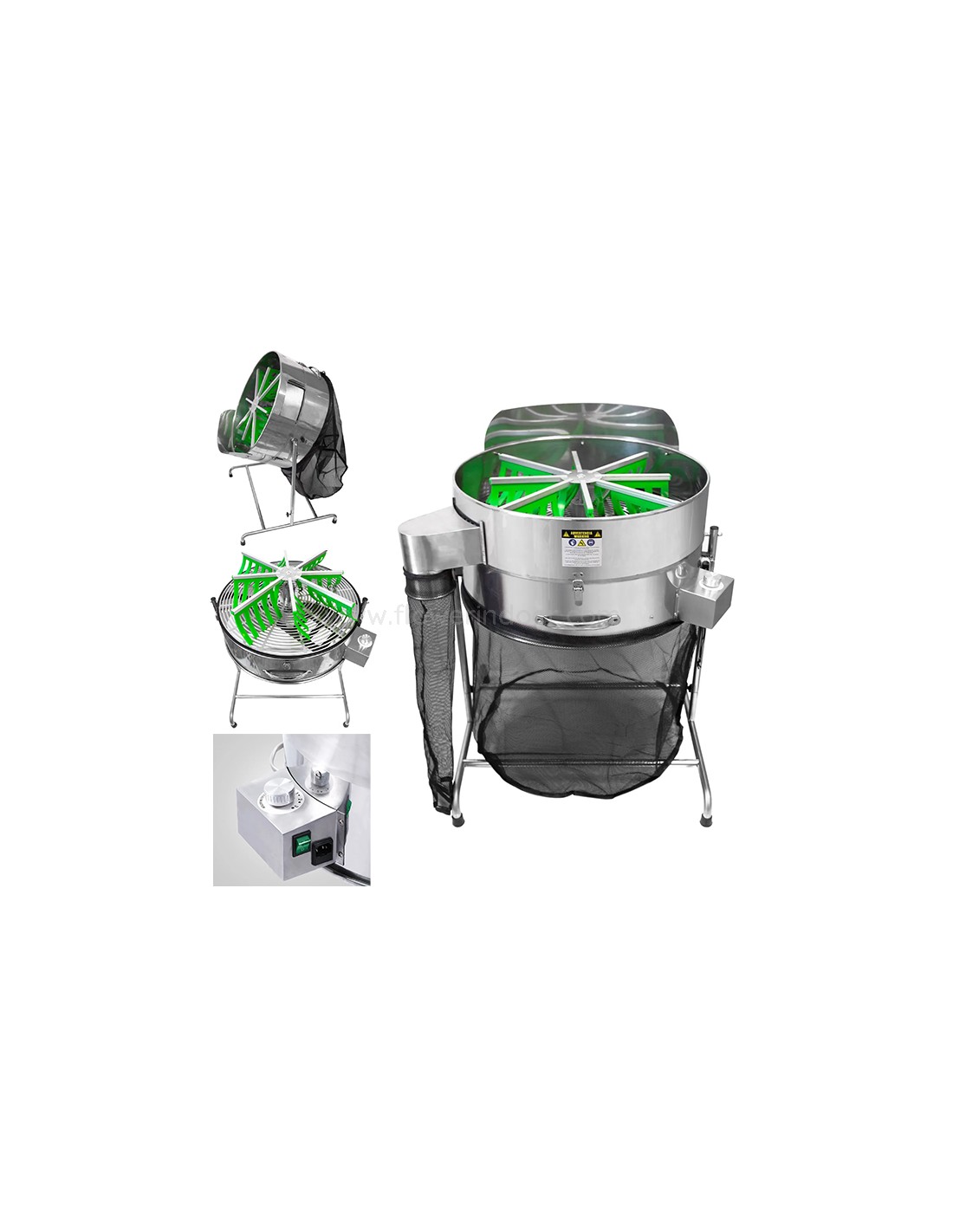 Su diámetro interior de 60 cm y potente motor de 100W la convierten en una máquina de alto rendimiento, capaz de manejar cosechas abundantes en menos tiempo y con la máxima calidad.