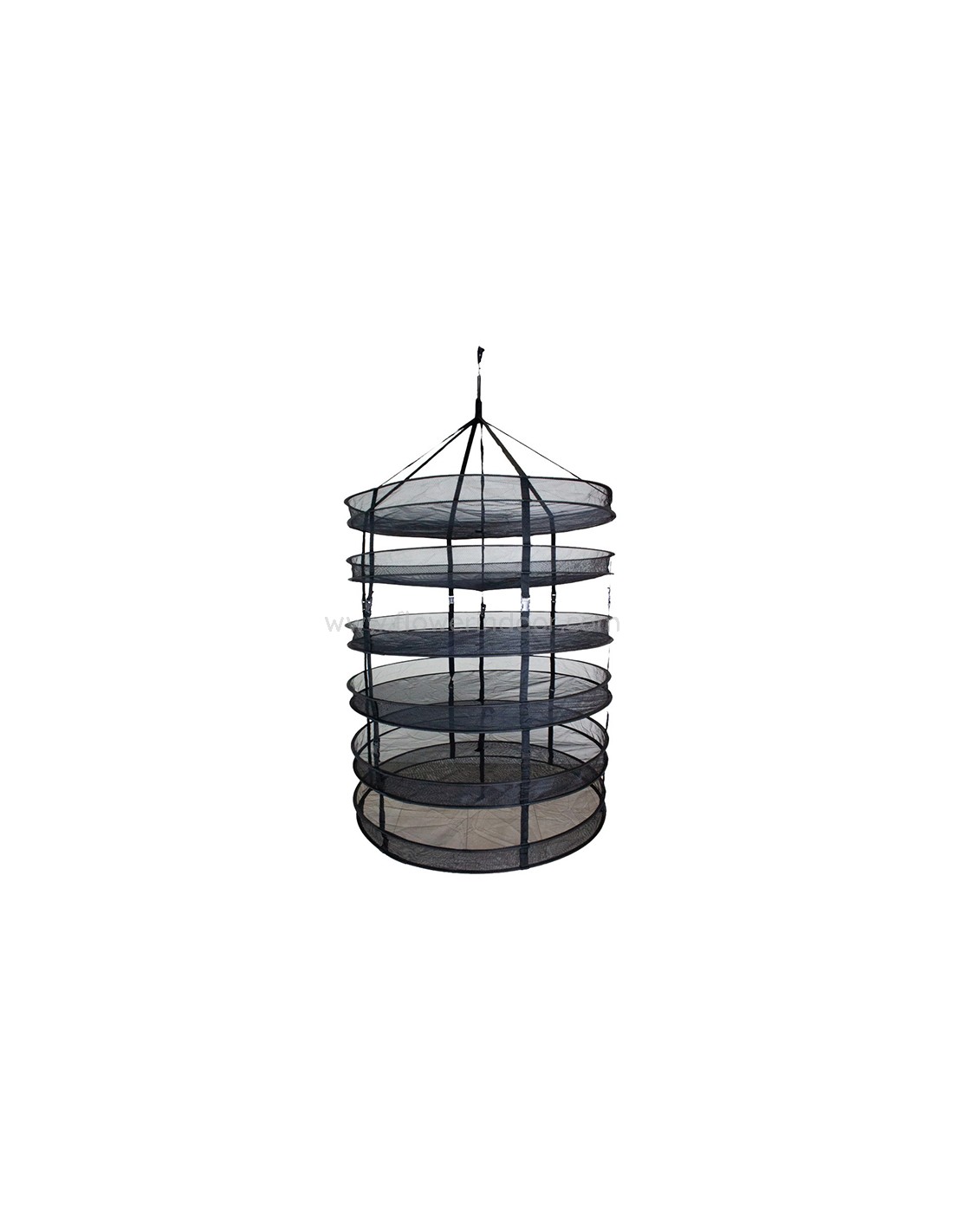 Secadora de malla redonda de 90 cm y 6 pisos, con suficiente espacio entre ellos para garantizar un secado óptimo.